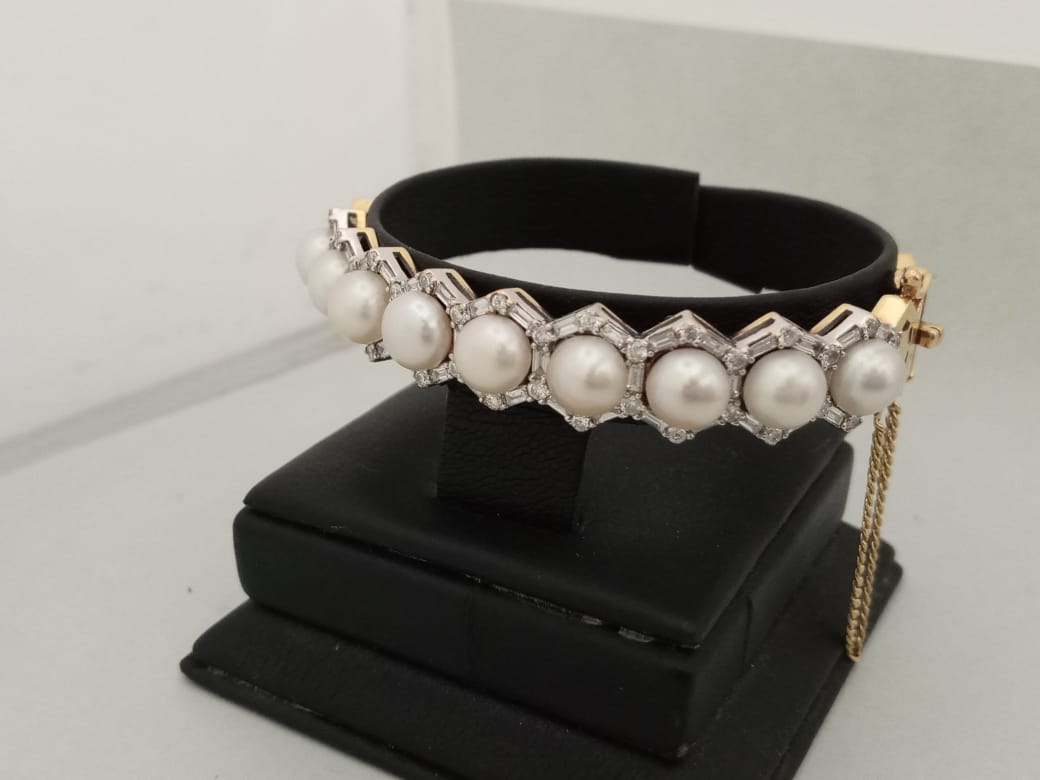 “Timeless Elegance. 💎✨ This pearl and diamond bracelet exudes sophistication and luxury, perfect for adding a touch of glamour to any outfit. Whether it’s a formal event, a wedding, or a special night out, this piece is sure to turn heads. Its understated yet striking design makes it a treasured keepsake for any jewelry lover. 💍 How would you style this bracelet? 😊”