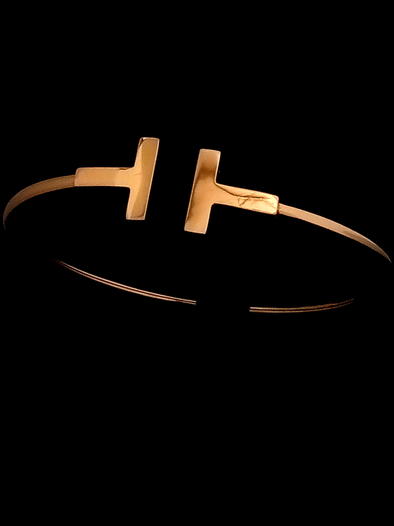 - That bracelet tho 🔥! Looks like a sleek gold cuff with a bold “H” design, kinda like something you’d see from a high-end jeweler like Tiffany & Co. The minimalist black background makes the gold pop 💎. The “H” motif could be a personal touch or initials, adding a custom vibe to the piece 😎. What do you think about it?