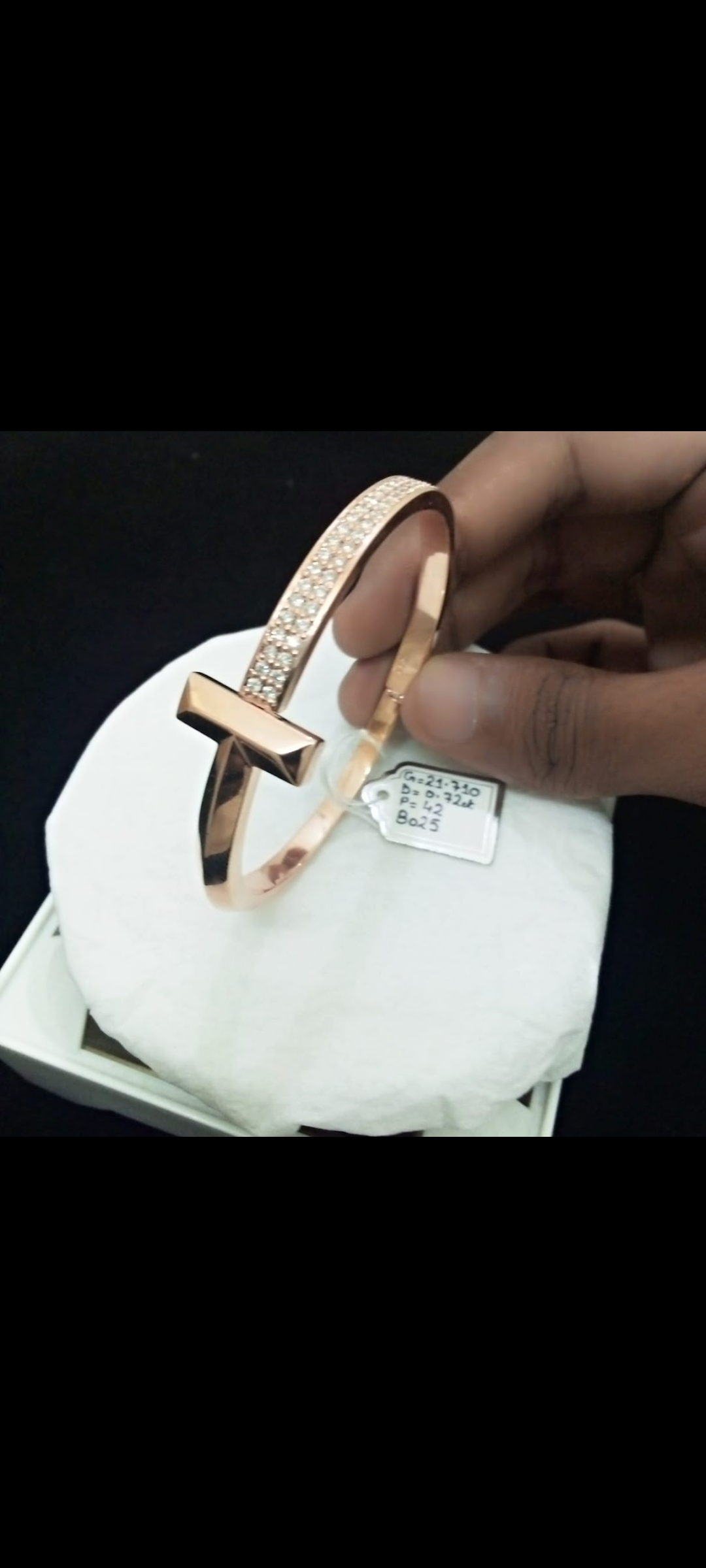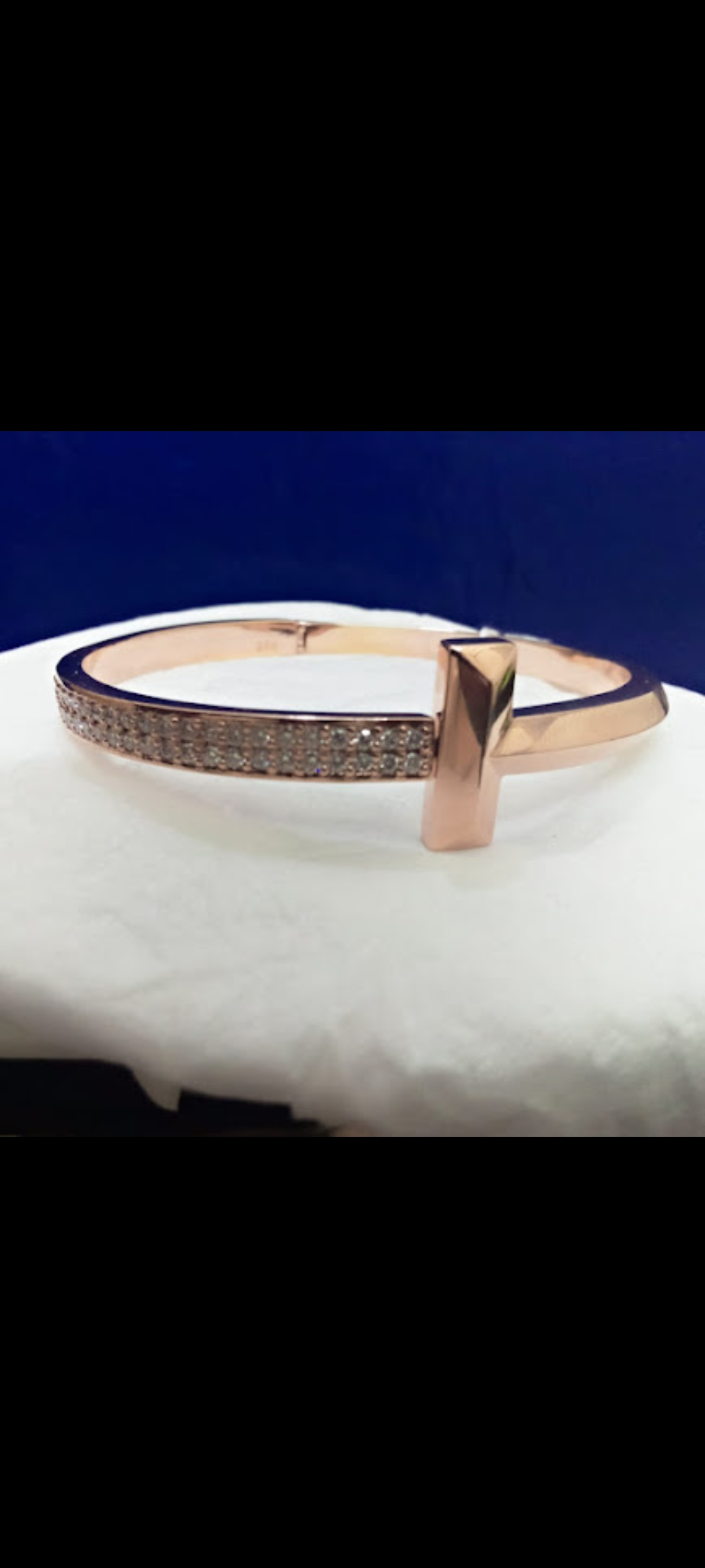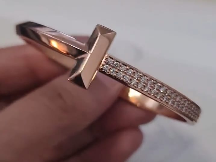 - That bracelet tho 🔥! Looks like a sleek Tiffany-inspired bangle with a bold cross design in rose gold 💎. The diamonds encrusted on the band give it a luxe, sparkly vibe 💫. Cross motifs like this are super trendy in jewelry right now, and pairing it with diamonds = major style points 😎. What do you think about this piece?♥